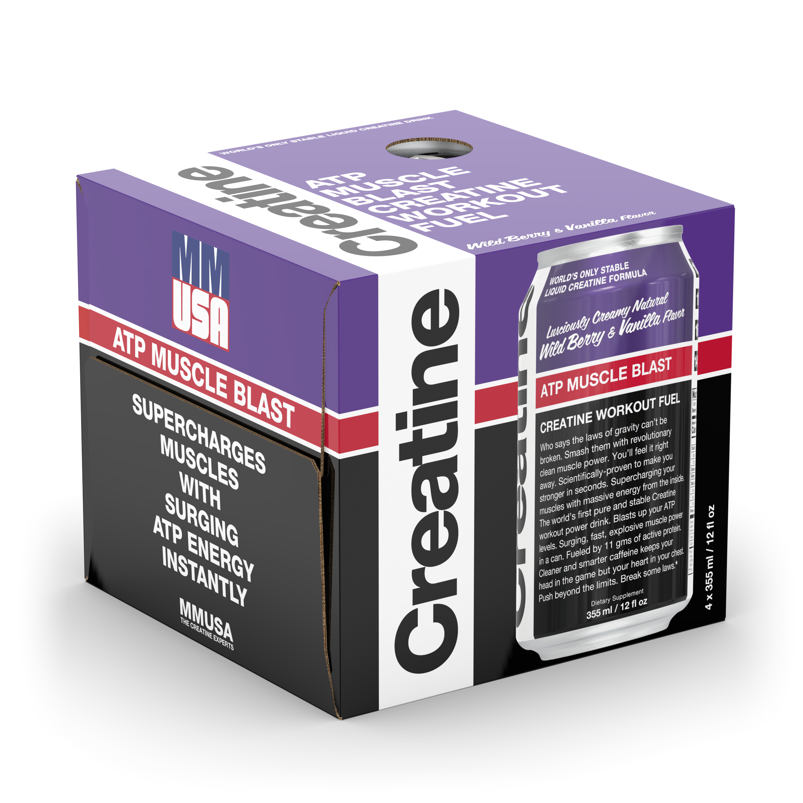 ATP Muscle Blast est la véritable boisson énergisante à la créatine. Elle est composée de vraie créatine et contient moins de sucre et de nervosité que les autres boissons énergisantes colorées qui se prétendent « énergisantes ». C’est la seule dont vous avez besoin.