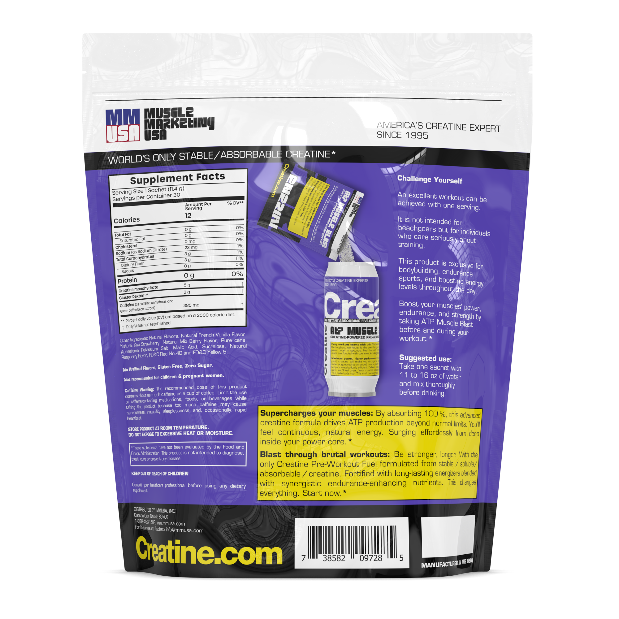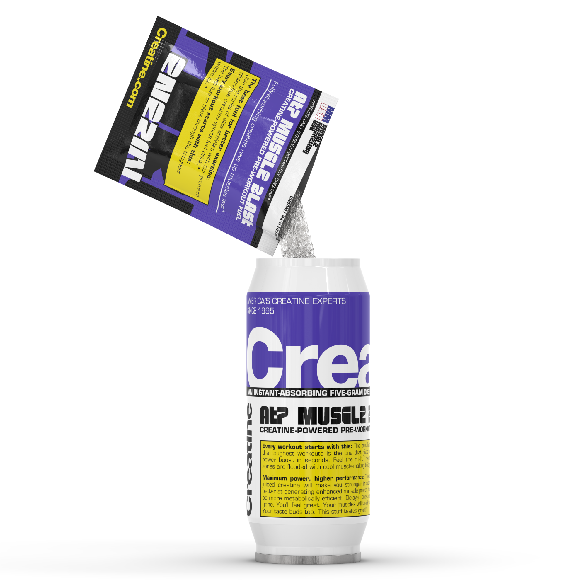 ATP Muscle Blast est la véritable boisson énergisante à la créatine. Elle est composée de vraie créatine et contient moins de sucre et de nervosité que les autres boissons énergisantes colorées qui se présentent comme des « boissons énergisantes ». C’est la seule dont vous avez besoin.
