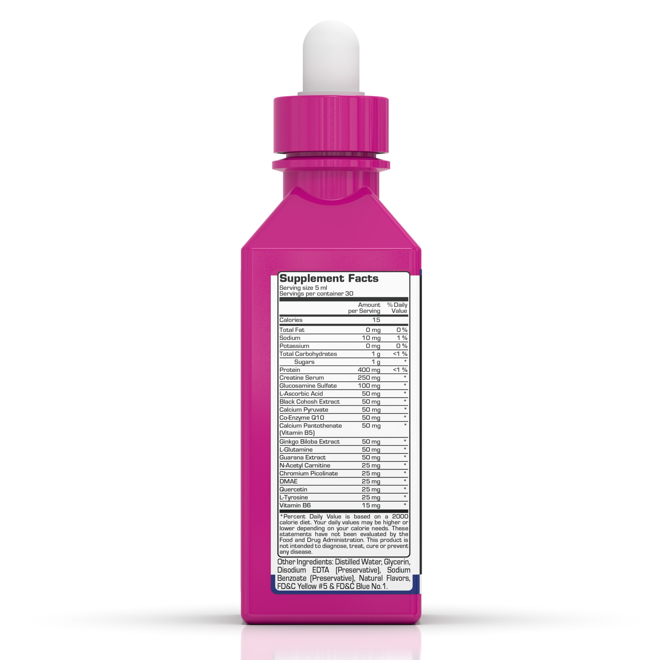 Autres ingrédients : Eau distillée, glycérine, EDTA disodique (conservateur), benzoate de sodium (conservateur), arômes naturels, jaune FD&C n° 5 et bleu FD&C n° 1.